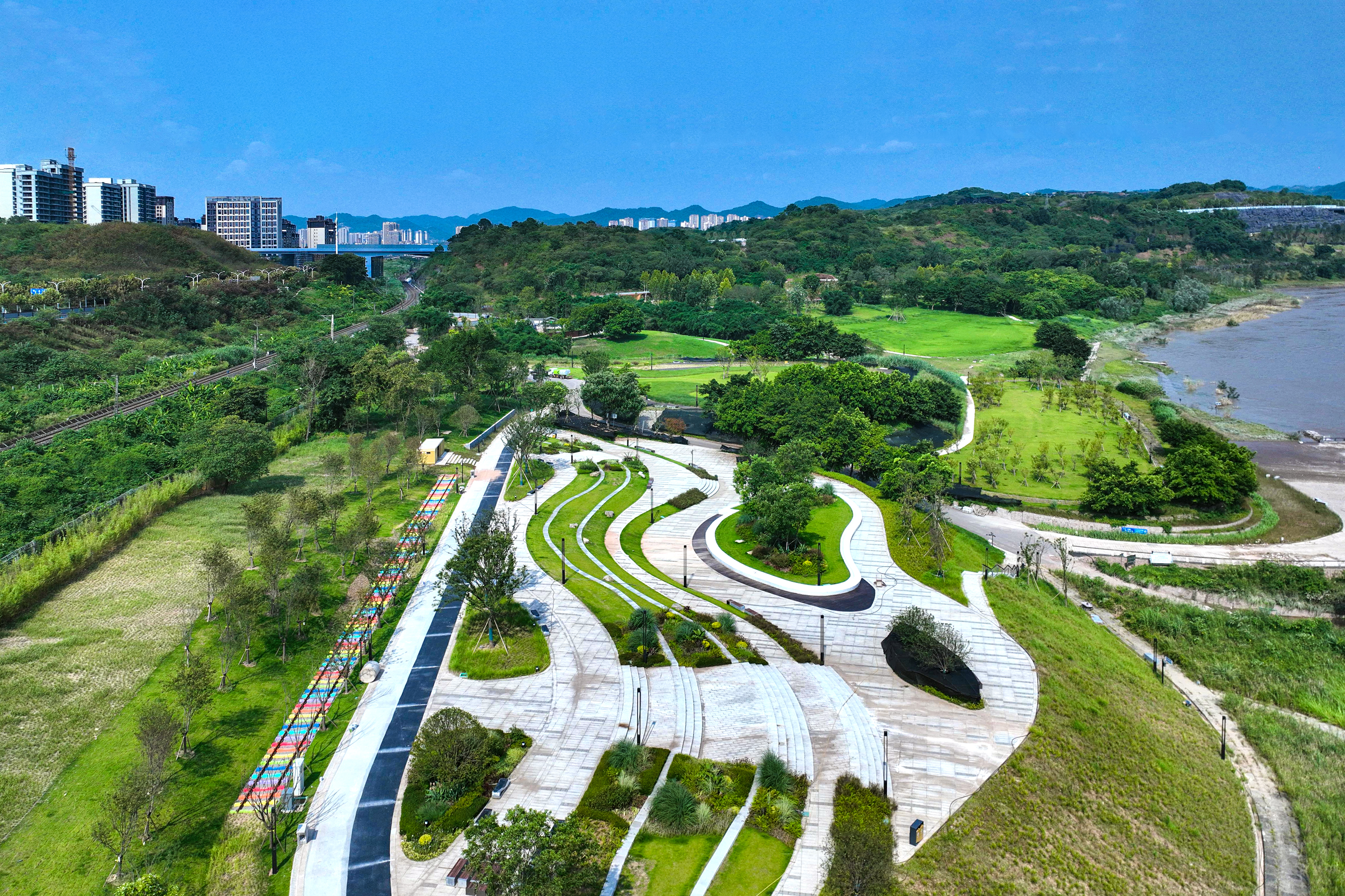 中冶建工承建的重慶“兩江四岸”治理提升長江北岸線延伸工程釣魚嘴濱江段項目,是重慶市重點工程,也是“兩江四岸”治理提升重點項目,全長約4.2公里,通過微改造,巧妙利用現(xiàn)有草海、森林、江灘等資源,彰顯原生態(tài)自然景觀,使生態(tài)美景連點成線,讓群眾享受更多開窗見景、推門見綠的城市空間,成為全國各地增植補(bǔ)綠、打造生態(tài)宜居城市的典范。